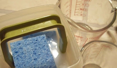 He got the glue and tape and his hammer out.